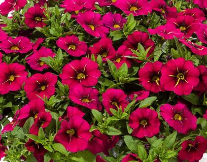 Rich rose bloom with dark throat and whispers of yellow striping up out of the yellow eye.