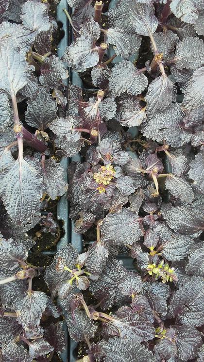 Dark, eggplant purple leaves are shiny and delicately scalloped. This unusual coleus was reportedly discovered growing under a bench in the Biltmore Gardens Conservatory.