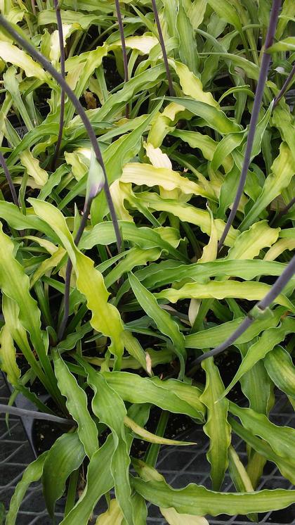 This small sized hosta makes a big statement in a shade garden with its bright chartreuse, gently arching foliage. Leaves are long and narrow with dramatically rippled edges. Mid-summer flowers are a lovely lavender. Petioles develop red speckling as the plant matures. Morning sun helps develop brighter foliage color.