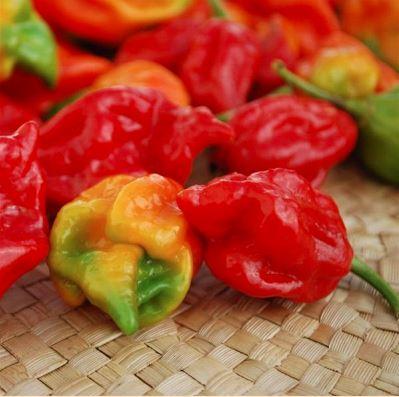 Eli, our veggie grower, has to "suit up" in mask and goggles to seed this super hot pepper coming in at 1,200,000 Scovilles or more. This is considered the hottest pepper in the world. So named for the pointed end on this red wrinkled pepper that resembles a scorpion's stinger. How appropriate is that! Be forewarned.