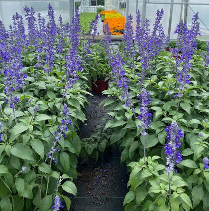 Plant form is exceptional on this compact version of 'Indigo Spires'. True blue spires cover the sturdy dark green foliage. Blooms all season. Excellent as a container plant or for a blue "WOW!" in the garden.