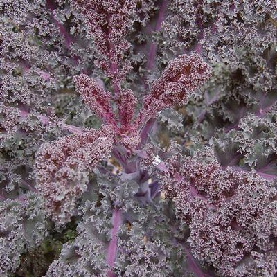 This is Redbor’s twin sister. Same deep purple-red frilly curled leaves. Ornamental edible.
