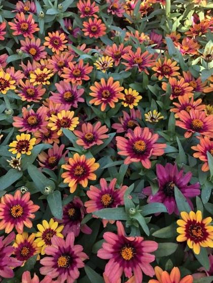 Eye-catching and sassy, this Profusion will have neighbors coming over from across the street to ask about it. Bushiness and tolerance to dry soil come with the series. The flowers show off a kaleidoscope of colors from the golden yellow and red center of the freshly opened flowers to the blushing tones of peach, dusty orange, mauve and rose as the flower matures.